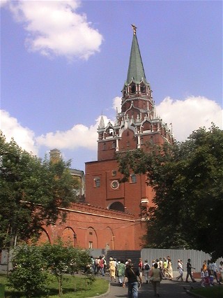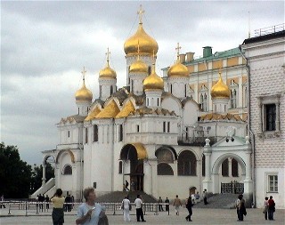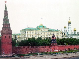Der Kreml ("Festung, Burg"), 1147 erstmals als Befestigungsanlage errichtet und in den folgenden Jahrhunderten mehrmals zerstört und wieder aufgebaut, bildet noch heute den Mittelpunkt Moskaus. Die das 28 ha große Areal umfassende Backsteinmauer, 2,2 km lang und bis zu 19 m hoch, bewehrt mit 19 Türmen, unterstreicht von außen den gleichsam abweisenden Festungscharakter. Das Innere aber beherbergt neben Festungsbauwerken und Palästen auch mehrere der für Russland so typischen Kirchen: Meist weiß gekalkte Außenwände, überkrönt von mehreren goldenen, blauen oder bunten Kuppeln in Zwiebelform bilden ein formen- und farbenprächtiges Ensemble, das einmalig sein dürfte. Das Kircheninnere meist dunkel, geschmückt mit Marmorsäulen, vergoldeten Stuckornamenten, Gemälden und kostbaren übermannsgroßen Ikonen. Mit Worten lässt sich die Pracht der Ausstattung gar nicht beschreiben. Hier im Kreml, in dem unter Katharina der Großen gebauten Senatspalast, befindet sich auch der Sitz des russischen Präsidenten.