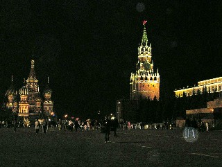 Der an den Kreml anschließende Rote Platz ist dem Fernsehpublikum früherer Jahre bekannt für seine unter den Sowjets dort stolz exerzierten Paraden und Aufmärsche; mit seinen 60.000 qm Fläche und der umgebenden Kulisse war er ja geradezu prädestiniert für militärische Machtdemonstrationen. Heute jedoch geht es dort friedlich zu, auf der autofreien (!) Fläche tummeln sich Touristen und manchmal finden dort open-air-Konzerte statt. Umrahmt wird er an den Längsseiten von der Kremlmauer auf der einen und dem Kaufhaus GUM auf der anderen Seite, an den Stirnseiten von der farbenprächtigen Basilius-Kathedrale (1550 – 1560 erbaut) und dem Historischen Museum gegenüber. Das erwähnte Kaufhaus GUM (erbaut 1893), das eine ganze Längsseite des Roten Platzes einnimmt, ist das größte Kaufhaus Russlands und sicher auch das schönste. Über die gesamte Länge des Gebäudes laufen drei nebeneinander liegende, jeweils zweigeschossige Ladenpassagen, überdacht von Glas-Rundbögen.