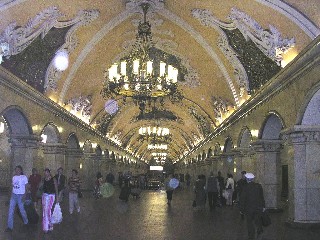 Eine Sehenswürdigkeit Moskaus ist die Moskauer Metro. Sie wurde 1935 eröffnet und durchzieht heute auf mehr als 200 km mit über 100 Stationen das Moskauer Stadtgebiet. Sie ist nicht nur billig (Einheitspreis 10 Rubel = 33 Cent), sondern auch schnell (im Stoßverkehr teilweise im 30-Sekunden-Takt!). Aber das besondere an ihr sind die kunstvoll und prächtig ausgestatteten Stationen. Sie haben nicht das Ambiente eines Zweckbaus, sondern ähneln mit ihrer jeweils unterschiedlichen Ausstattung (Marmorsäulen, Stuckgewölbe, Kronleuchter, Gemälde, Monumentalmosaiken, Skulpturen usw.) eher Fürstenpalästen.