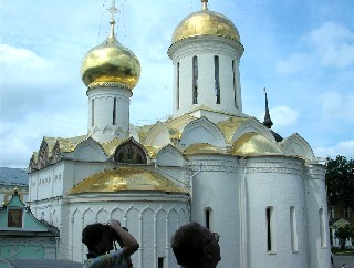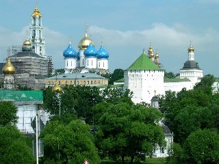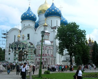 Im 70 km entfernten Sergijew Posad befindet sich das bedeutendste Kloster der russisch-orthodoxen Kirche. Der weiträumige Klosterbezirk beinhaltet hinter hohen weißen Mauern neben Klosterbauten mehrere bedeutende Kirchen aus verschiedenen Jahrhunderten. Wegen der heilkräftigen Wirkung des Wassers aus einem Klosterbrunnen ist das Kloster auch ein bedeutender Wallfahrtsort. 1340 wurde das Kloster vom Heiligen Sergij Radoneschskij gegründet. Schon im 14. Jahrhundert gehörte es zu den bedeutendsten russischen Klöstern. 1392 wurde die Dreifaltigkeitskirche über dem Grab des Heiligen errichtet. Daneben steht der 1476 errichtete, 87 m hohe Glockenturm. Die größte Kirche auf dem Gelände, die Maria-Himmelfahrts-Kirche, wurde 1585 fertig gestellt. Sie trägt, wie ihre Namensvetterin in Moskau, eine goldene Zentralkuppel, umrahmt von 4 tiefblauen kleineren Kuppeln. Die Fresken im Innenraum zeigen Mariä Himmelfahrt. Sehenswert auch das 1686 – 1692 errichtete barocke Refektorium mit seinem 70 m langen Saal.