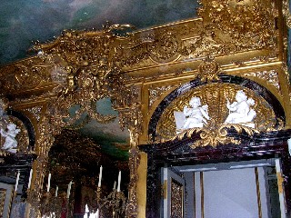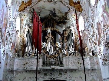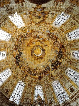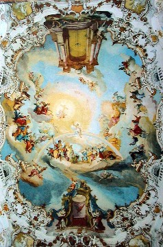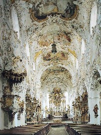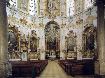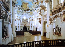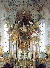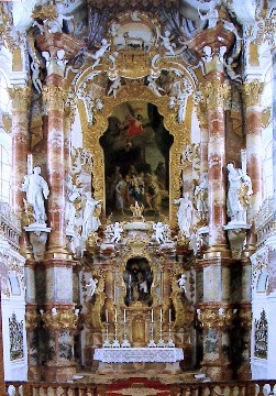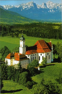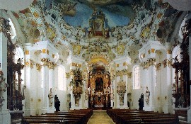 | Von außen eher unscheinbar, entfaltet die Wieskirche im Innern die lebensforhe Pracht des Rokoko in Vollendung | |||||||||||||||