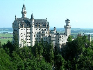| Das "Märchenschloss" Neuschwanstein ist eines der Königsschlösser (und das wohl bekannteste), die der "Märchenkönig" Ludwig II. von Bayern erbauen ließ. Er hatte ja einen Teil seiner Kindheit im benachbarten Schloss Hohenschwangau verbracht und kannte und schätzte die Gegend. Als junger König faßte er 1868 den Entschluss, anstelle einer alten Burgruine bei der Pöllatschlucht eine Burg "im Style der alten deutschen Ritterburgen" erbauen zu lassen. Der König hatte sehr genaue Vorstellungen, wie seine Burg aussehen sollte und setzte diese auch durch und um. 1869 wurde unter Leitung des Hofbaumeisters Eduard von Riedel mit dem Bau begonnen, der Torbau war 1873, der Palas (Königsbau, Hauptgebäude) erst 1883 fertiggestellt. Im Frühjahr 1884 war auch die Königswohnung bezugsfertig und König Ludwig II. hat in den folgenden zwei Jahren bis zu seinem mysteriösen Tod häufig hier gewohnt. Nach seinem Tod wurden alle Bauarbeiten eingestellt. Die Kemenate wurde nachträglich 1890 in vereinfachter Form errichtet, der mit 90 m Höhe alles überragende geplante Bergfried wurde nicht mehr gebaut. | |||||||||||||||