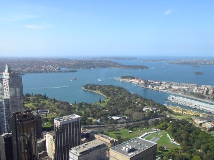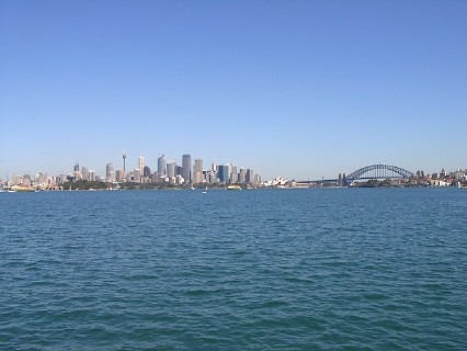 Vom Taronga Zoo schauen wir noch einmal über die Bucht hinüber auf die City und beenden mit diesem beeindruckenden Ausblick unsere kurze Stadtführung durch Sydney. Ich hoffe, es hat Ihnen gefallen; wenn Sie mehr sehen wollen, fliegen Sie doch selber einmal hin, Sie werden es nicht bereuen!