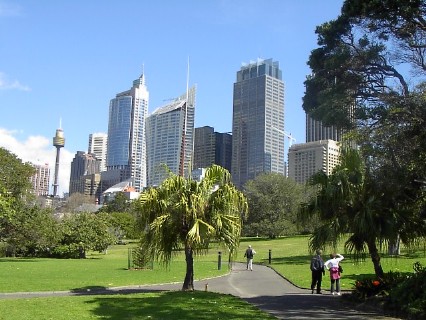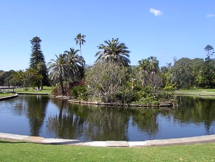 The Royal Botanic Gardens, der Botanische Garten, eine etwa 30 Hektar große Insel der Ruhe im Herzen der Stadt, erstreckt sich rund um den Farm Cove östlich vom Hafen. Hier stand zu Anfang die erste Farm der Kolonie. Heute ist der Botanische Garten die älteste wissenschaftliche Einrichtung des Landes mit Pflanzen aus Australien und der ganzen Welt. Hier, in dieser schönen Umgebung, direkt neben der geschäftigen City, können die Großstädter ihre Mittagspause verbringen und ausspannen