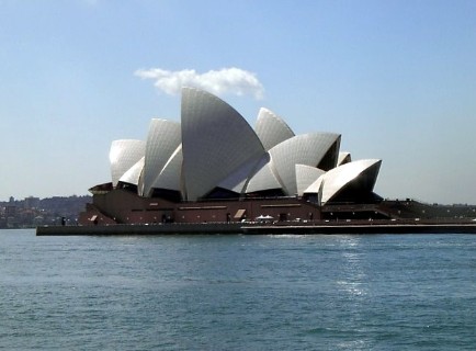 Eines der Wahrzeichen von Sydney ist das Sydney Opera House. Von 1959 bis 1973 wurde 14 Jahre daran gebaut, im Oktober 1973 wurde es von Königin Elisabeth II. eingeweiht. Es beherbergt 5 Theater (das größte davon, die Concert Hall, mit 2690 Sitzplätzen), 4 Restaurants und die entsprechenden Nebenräume. Einmalig auf der Welt ist die kühne Dachkonstruktion, die von den einen als sich öffnende Muschelschalen, von den anderen dagegen als sich im Wind blähende Segel gedeutet werden.