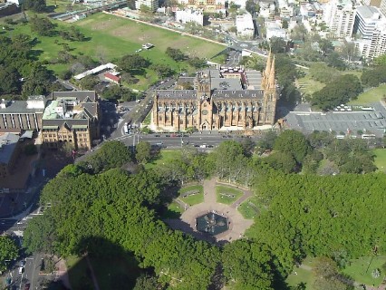 Am Fuße des AMP Towers liegt der Hydepark und gegenüber die St. Mary's Cathedral. Der Hyde Park, nach seinem Vorbild in London benannt, ist ein kleiner Park inmitten der geschäftigen Stadt. Mit dem Bau der St. Mary's Cathedral, der ersten katholischen Kirche in Sydney, wurde 1821 begonnen, 1882 wurde sie eingeweiht, aber erst 1928 vollendet.