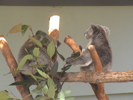 Dies ist auch die Geburtsstunde Sydneys, denn dort, am Port Jackson, wurde die erste Strafkolonie errichtet. Die Stadt, ursprünglich nur ein Zeltlager für ca. 1000 Menschen, entwickelte sich durch den Zuzug weiterer Sträflinge, aber auch freier Siedler, so rasch, dass bereits 1805 die erste Universtität gegründet wurde. Heute ist Sydney mit rund 4 Millionen Einwohnern nicht nur die größte, sondern auch die kulturell und ökonomisch bedeutendste Stadt Australiens. Von der Aussichtsplattform hat man einen herrlichen Blick auf Stadt und Hafen: Hier der Blick über den Royal Botanic Garden hinweg auf die Bucht von Port Jackson (unten links). Im Norden breiten sich die Wohngebiete und Vororte aus (unten rechts) Der Zoo beherbergt Tierarten aus vielen Ländern, der Schwerpunkt liegt aber natürlich auf der Fauna Australiens. Und auch uns interessieren besonders die typisch australischen Tiere wie das Känguruh (rechts) und das Emu (links unten), die beide Bestandteil des australischen Wappens sind, sowie der putzige Koalabär (rechts unten).