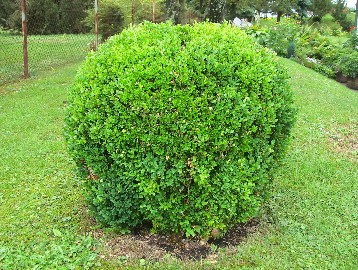 Beschreibung: Winterharter immergrüner Strauch mit kleinen, dicht stehenden Blättern; läßt sich gut in Form ziehen und schneiden; es gibt verschiedene Arten und Größen Form: Strauch Wuchshöhe: langsam wachsend, nach 3 Jahren 90 cm, nach 6 Jahren 1,5 - 1,8 m Blüte: - bevorzugte Lage: Sonne oder Halbschatten Bodenanspruch: alle Bodenarten Pflege: keine Pflege erforderlich Schnitt: nach Bedarf zurück- oder in Form schneiden Pflanzen: im Oktober/November oder April; Vermehrung durch Hartholzstecklinge (vom halbreifen Holz) möglich |