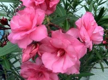 Beschreibung: Beliebte Kübelpflanze mit schönen rosa oder weißen Blüten; immergrün, aber nicht winterhart! Form: Strauch Wuchshöhe: 1 - 2,5 m Blüte: Juni bis Oktober bevorzugte Lage: Sonne Pflege: verblühte Blüten ausschneiden; im Herbst in einen kühlen und hellen Raum stellen und bei über 5° überwintern Schnitt: im allgemeinen kein Schnitt erforderlich, bei Bedarf zurückschneiden Pflanzen: im Juni können bei Temperaturen über 18° Stecklinge gepflanzt werden Bemerkung: Alle Teile sind giftig! |