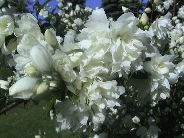 Beschreibung: Der Pfeifenstrauch, auch falscher Jasmin oder Duftjasmin genannt, ist ein stark duftender Strauch mit einer Fülle weißer Blüten; winterhart Form: Strauch Wuchshöhe: 2 - 3 m Blüte: Mai bis Juni bevorzugte Lage: Sonne bis Halbschatten Bodenanspruch: normaler Boden, keine besonderen Ansprüche Pflege: anspruchslos; bei lang anhaltender Trockenheit gießen Schnitt: nach der Blüte das ältere Holz ausschneiden Pflanzen: Oktober bis März; Vermehrung durch Stecklinge möglich (im Juli/August vom halbreifen, im September/November vom reifen Holz) |